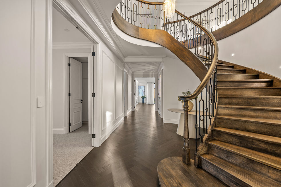 This distinguished residence embodies the elegance of French-Inspired Provincial architecture through its symmetrical façade, refined stone finishes, and grand internal proportions. Showcasing herringbone timber flooring, bespoke cabinetry, a marble-appointed kitchen with feature island, temperature-controlled wine storage, formal and informal living zones, and luxurious ensuite bedrooms, the home is designed for both sophisticated entertaining and everyday family comfort. Enhanced by statement lighting, curated interiors, and resort-inspired bathrooms, the property reflects a developer’s dedication to timeless craftsmanship, premium materials, and enduring residential excellence.